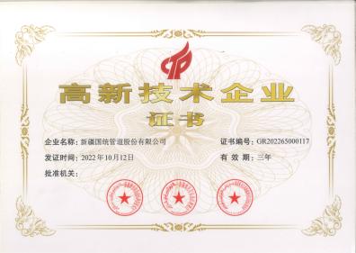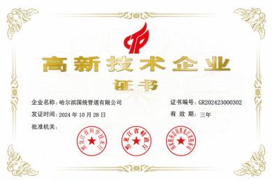 哈爾濱國統(tǒng)高新技術(shù)企業(yè)證書